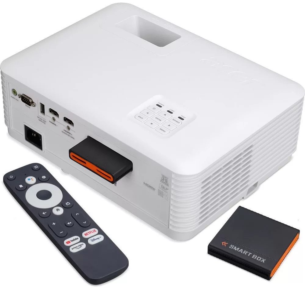 Ultrakompakt, energiatakarékos és környezetbarát lézer-LED hibrid fényforrású, 4K/HDR házimozi projektor Android TV adapterrel;