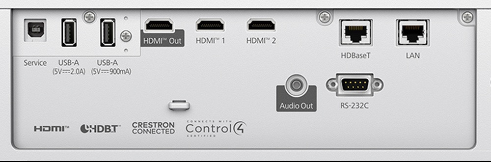 Kompakt telepített lézer fényforrású rövid vetítési távolságú vetítő 4K HDR támogatással, HDBaseT, LAN és vezeték-nélküli kapcsolaton keresztüli kontrollal;