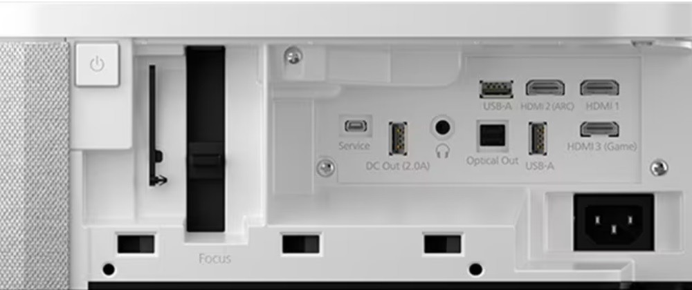 3x HDMI (HDCP 2.3, 1x GAME, 1x ARC), SPDIF optikai audiokimenet, sztereó mini Jack audiokimenet, Service USB Mini-B, 3x USB-A (1x 5V/2.0A táp)