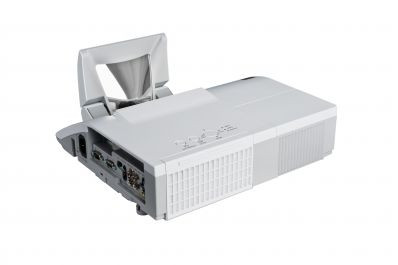 Tartókonzollal. Tükrös, extra közeli vetítés, fix lencse, Low-lamp mode (-20% fényerő és zaj, 5000h izzóélettartam), LAN, USB prezentáció, HDMI, PIN kód védelem, felhasználói logo, 2 szgép bemenet, monitor kimenet, fehér- és feketetábla mód, magyar menü