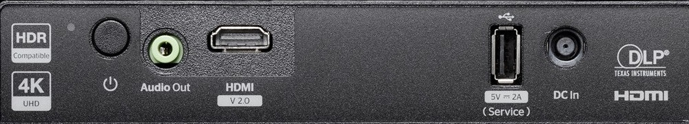 HDMI2.0, Mini Jack audiokimenet, USB Type A (5V/2A táp és szerviz), DC tápcsatlakozó