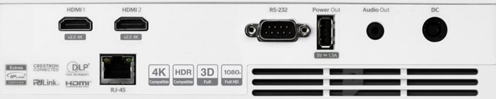 Ultrakompakt, 4K HDR kompatibilis, energiatakarékos és környezetbarát lézer-foszfor fényforrású prezentációs projektor hálózati kontrollal;