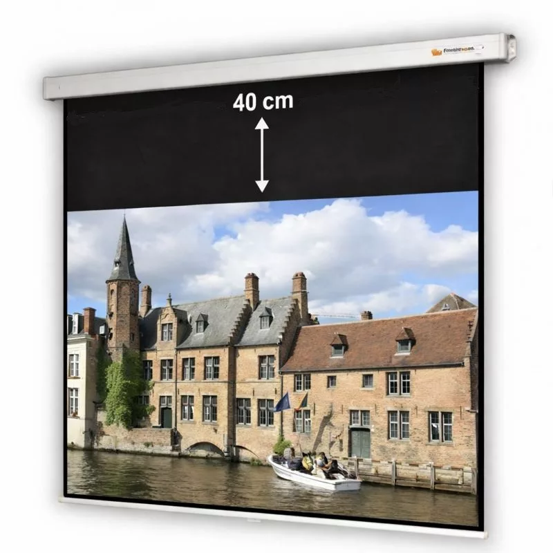 Fehér tokos, kézi mozgatású, falra és mennyezetre szerelhető vászon, körbe 4 cm-es fekete kerettel